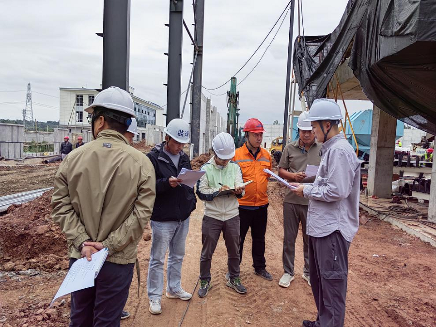 (備注:副總經(jīng)理?xiàng)铈面脦ш?duì)檢查綿陽城西建筑固廢消納場項(xiàng)目建設(shè)情況并組織召開現(xiàn)場協(xié)調(diào)會(huì)。)