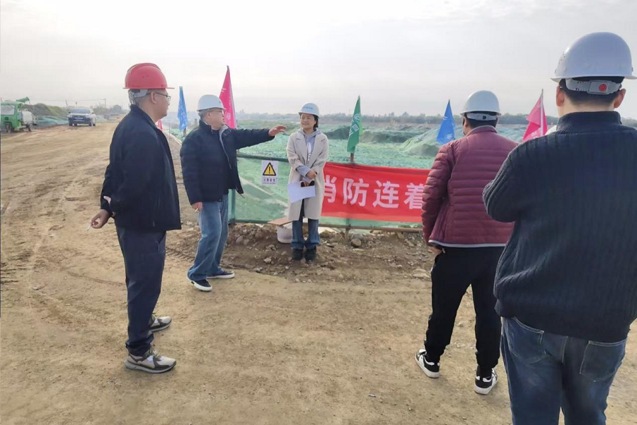 11月19日,公司支部書記、董事長袁波帶隊檢查綿陽城西建筑固廢消納場項目建設(shè)情況。(素材來源:綜合部 周星宇)