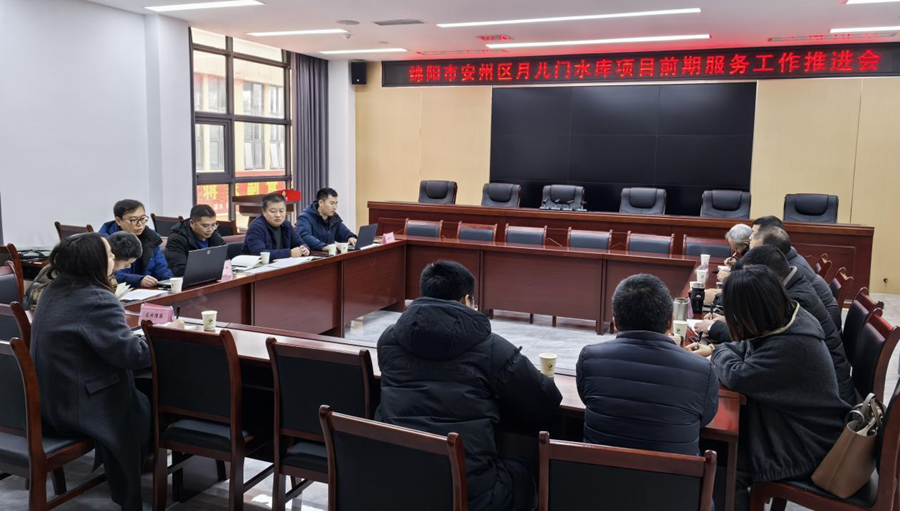 2月14日,公司工程項目部組織召開綿陽市安州區(qū)月兒門水庫項目前期服務(wù)工作推進(jìn)會。(素材來源:工程項目部 付喆)