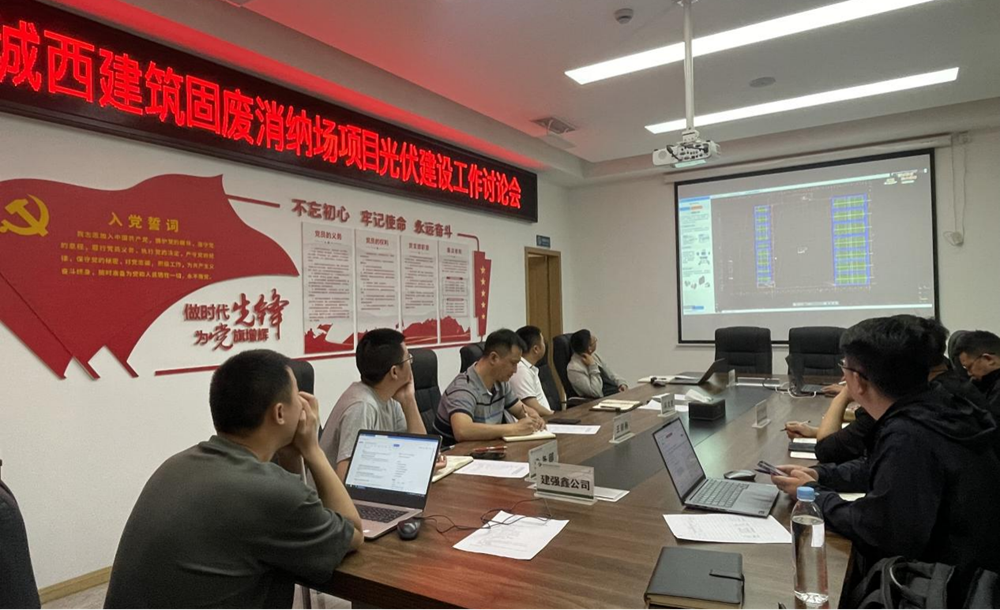4月24日,公司召開綿陽城西建筑固廢消納場項目光伏建設(shè)工作討論會。(素材來源:業(yè)務(wù)部 陳星)