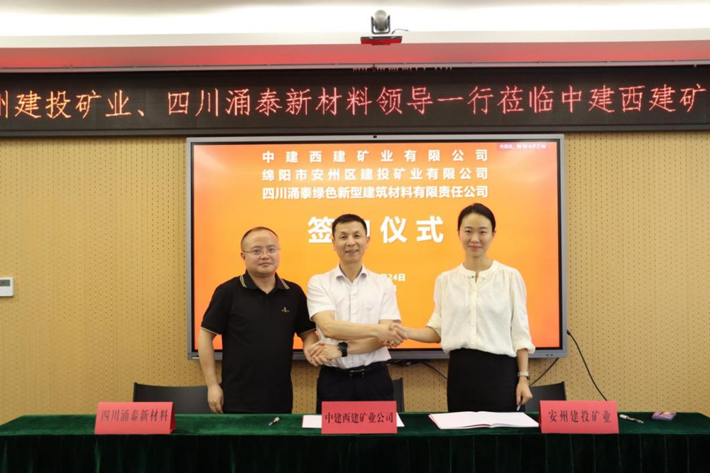 綿陽安州礦產(chǎn)資源集團有限公司 ——中建西建礦業(yè)有限公司、四川涌泰綠色新型建筑材料有限責任公司簽訂戰(zhàn)略合作協(xié)議